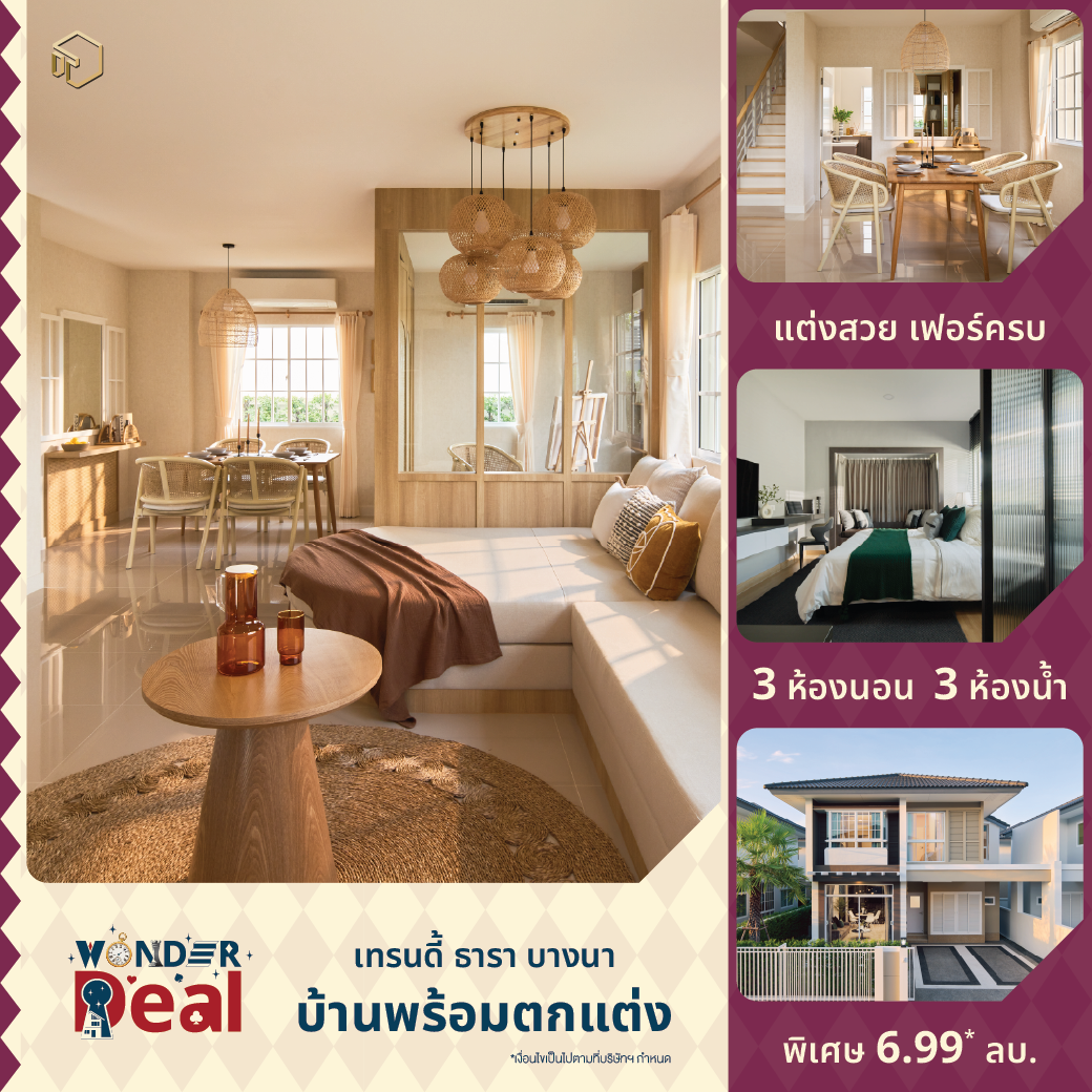 การเริ่มต้นชีวิตใหม่จะง่ายขึ้น เมื่อมีบ้านที่ “พร้อมอยู่จริง” เทรนดี้ ธารา บางนา คือบ้านพร้อมตกแต่ง ที่คุณสามารถย้ายเข้าอยู่ได้ทันที ไม่ต้องเสียเวลาแต่งเพิ่ม ทุกพื้นที่ถูกออกแบบมาเพื่อการใช้ชีวิตในทุกวัน