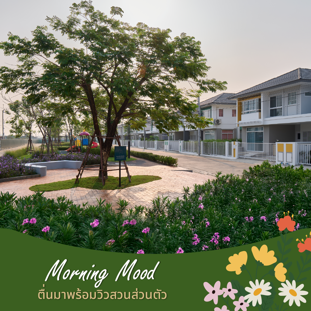 เช้าวันใหม่เริ่มต้นอย่างสดใส แค่เปิดม่านก็เจอวิวสวนหน้าบ้าน สูดหายใจลึกๆ รับอากาศสดชื่น เพิ่มพลังบวกก่อนเริ่มต้นวันได้ทันที ไม่ว่าจะเป็นการนั่งจิบกาแฟที่ระเบียง หรือพาลูกๆ ออกมาสนุกในสวนส่วนกลาง ทำให้ทุกเช้าก็เต็มไปด้วยความสุข