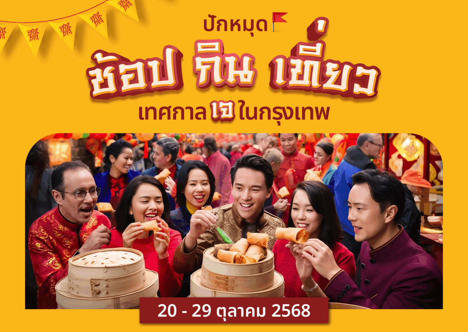 ปักหมุด! ช้อป กิน เที่ยวเทศกาลเจในกรุงเทพ 20 – 29 ตุลาคม 2568 เข้าสู่ช่วงเทศกาลกินเจทั้งที กรุงเทพฯ ของเราก็ไม่เงียบเหงาเลยค่ะ เพราะแต่ละย่านดังพร้อมใจกันจัดงาน ทั้งอาหารเจละลานตา บรรยากาศคึกคัก และกิจกรรมอิ่มบุญให้อุ่นใจ ใครที่อยากทั้งอิ่มท้องและอิ่มใจ ต้องตามลายแทงนี้เลย!