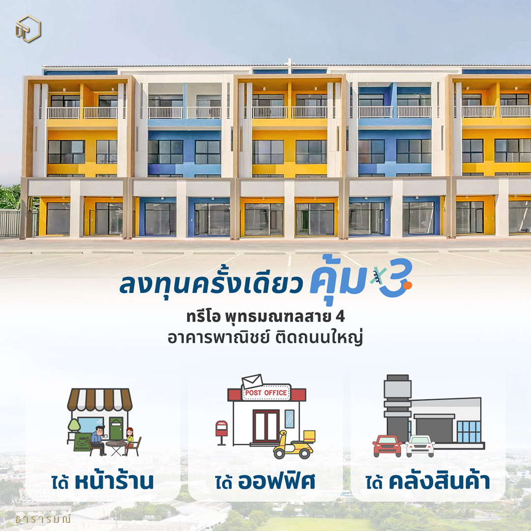 ถ้าคุณกำลังมองหาโอกาสลงทุนที่คุ้มค่า มาที่ ทรีโอ พุทธมณฑลสาย 4 เพราะอาคารพาณิชย์ติดถนนใหญ่หลังนี้ไม่ได้เป็นแค่ หน้าร้าน ให้โชว์สินค้าหรือบริการเท่านั้น แต่ยังรวม ออฟฟิศ สำหรับทำงาน และ คลังสินค้า สำหรับเก็บสต็อกไว้ในตัวเอง แบบครบจบในที่เดียว!