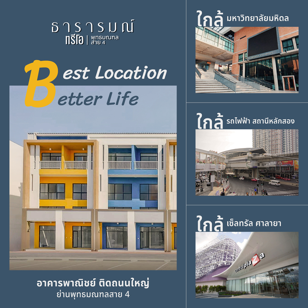 Trio พุทธมณฑลสาย 4 อาคารพาณิชย์ใหญ่ ทำเลทอง ติดถนนใหญ่ เดินทางสะดวก ใกล้ชุมชน แหล่งช้อปปิ้ง และสิ่งอำนวยความสะดวกครบครัน