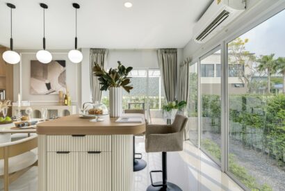 บ้านเดี่ยวสุดยอดทำเลติดถนนใหญ่ร่มกล้า ดั่งอัญมณีบนถนนร่มเกล้า ด้วยการดีไซน์ Facade ที่สวยงามตามสีของอัญมณี ทำให้บ้านดูสดใน สวยงาม และความใส่ใจในทุกรายละเอียดของการออกแบบและการอยู่อาศัย ทำให้ฟังก์ชั่นต่างๆ มีความลงตัว ตอบรับทุกไลฟ์สไตล์ เชื่อมต่อทุกความสุขของทุกคนในครอบครัวกับสวนสาธารณะขนาดใหญ่ภายในโครงการ และ Clubhouse