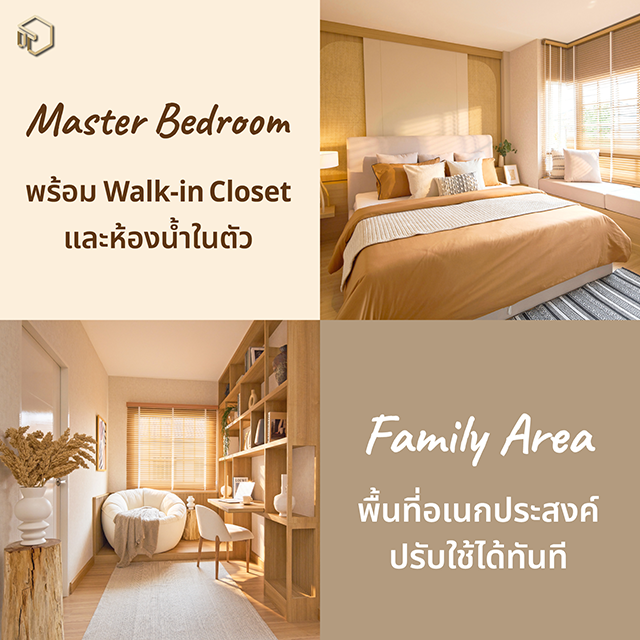 พื้นที่พักผ่อนที่ให้มากกว่าความสบาย ครบทั้ง Walk-in Closet และห้องน้ำส่วนตัว ตอบโจทย์ทั้งการใช้งานและความเป็นส่วนตัว ให้ทุกวันเริ่มต้นและจบลงอย่างสมบูรณ์แบบ